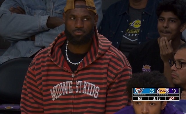 全球电竞-高挂免战牌!詹姆斯来到场边观战 本场因脚伤缺席